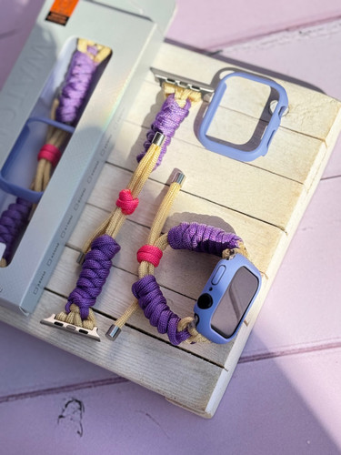 بند اپل واچ بافت بنفش کنفی با گارد سیلیکونی