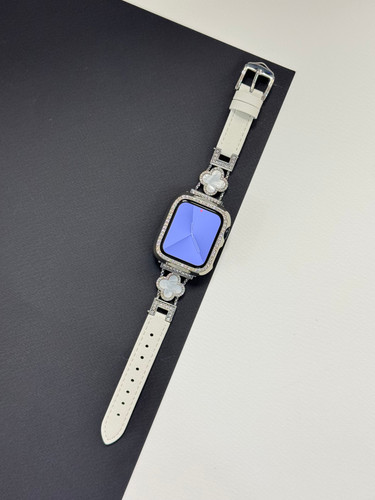 بند اپل واچ چرمی طرح ون کلیف با گارد نگین دار