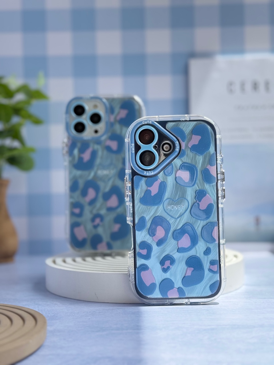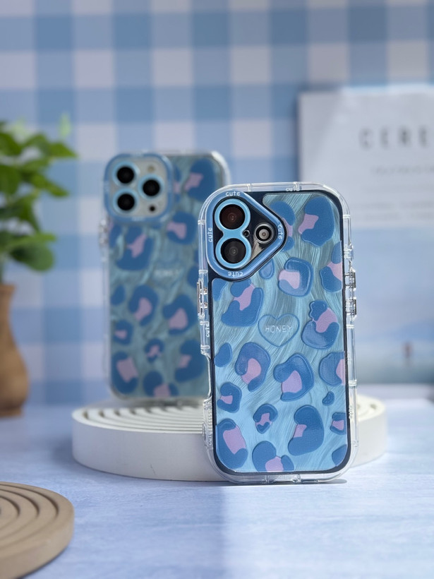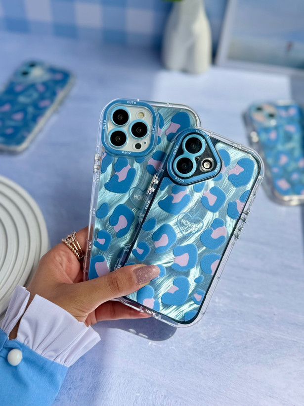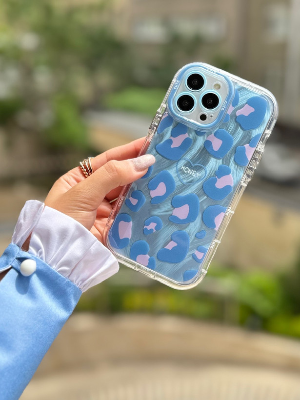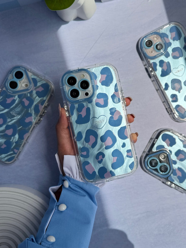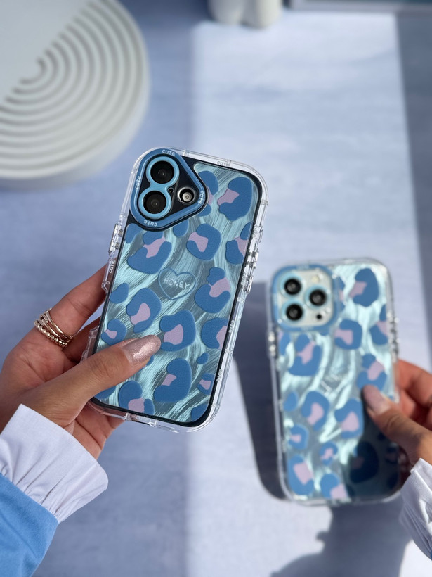 قاب پلنگی آبی پاستلی مناسب آیفون