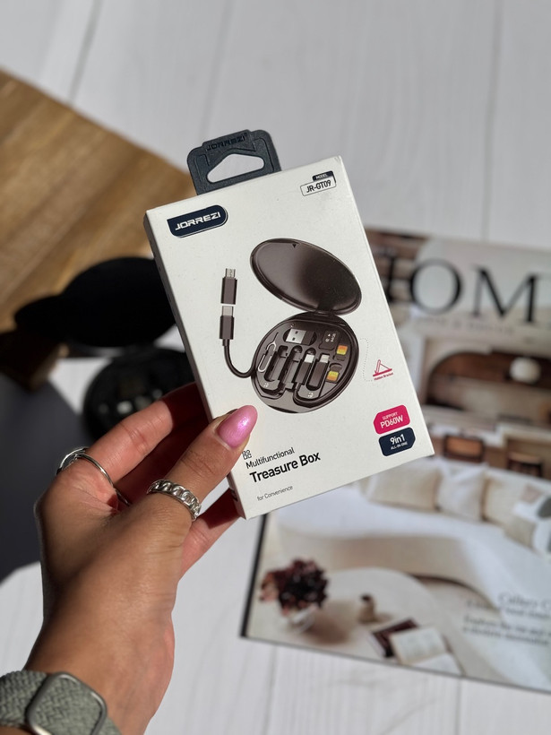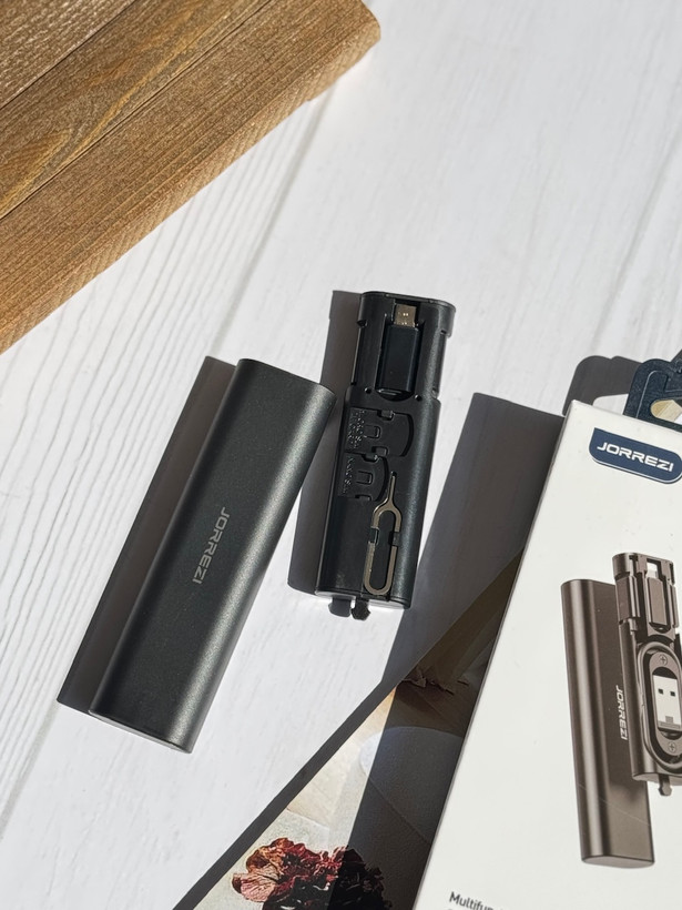 پک مسافرتی کابلبرند JORREZIدو مدل : GT09 دایره ایGT10 استوانه ای••محتویات : • سوزن سیم کارت• کابل ۲۵ سانتی متری USB-C To USB-C• تبدیل USB-C to USB• تبدیل USB-C to Lightning• تبدیل USB-C to Micro USB••ویژگی ها :• طراحی مینیمال• اسلات سیم کارت و میکرو اس دی• کیفیت بالا• رنگ مشکی.