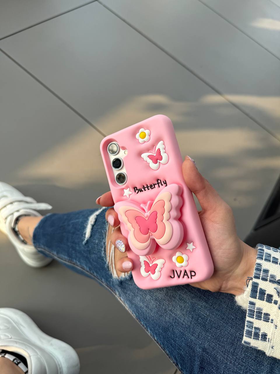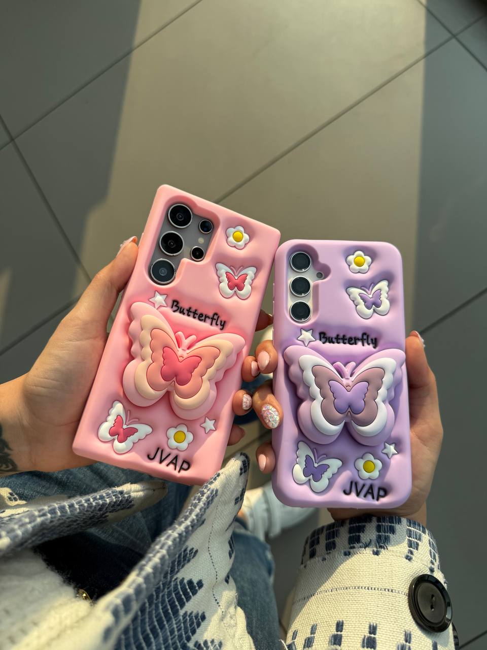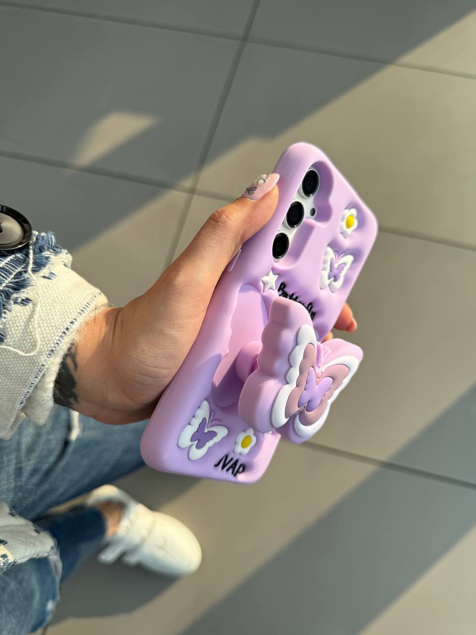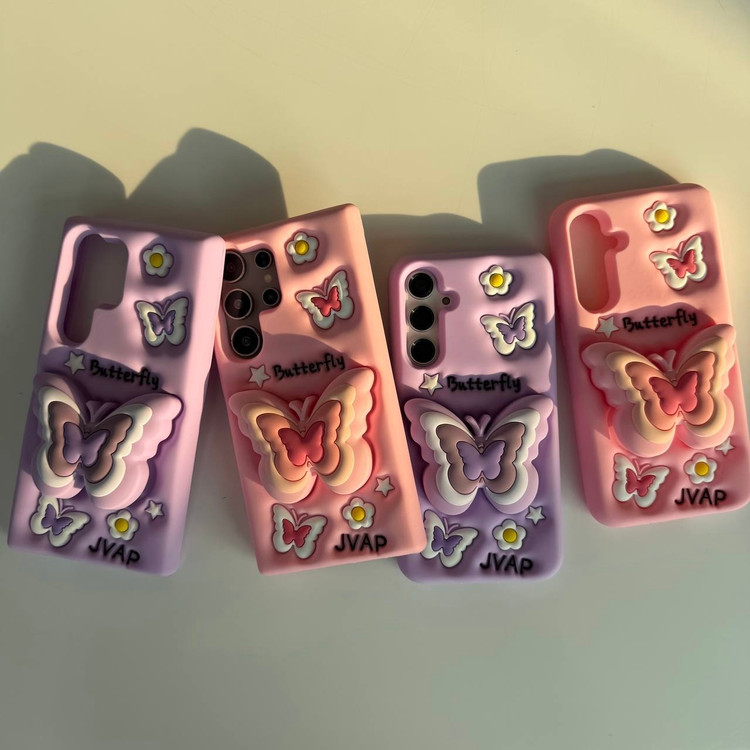 قاب سامسونگ مدل پروانه صورتی و بنفش سیلیکونی پاپ سوکتی کد T