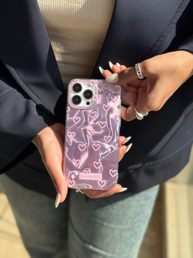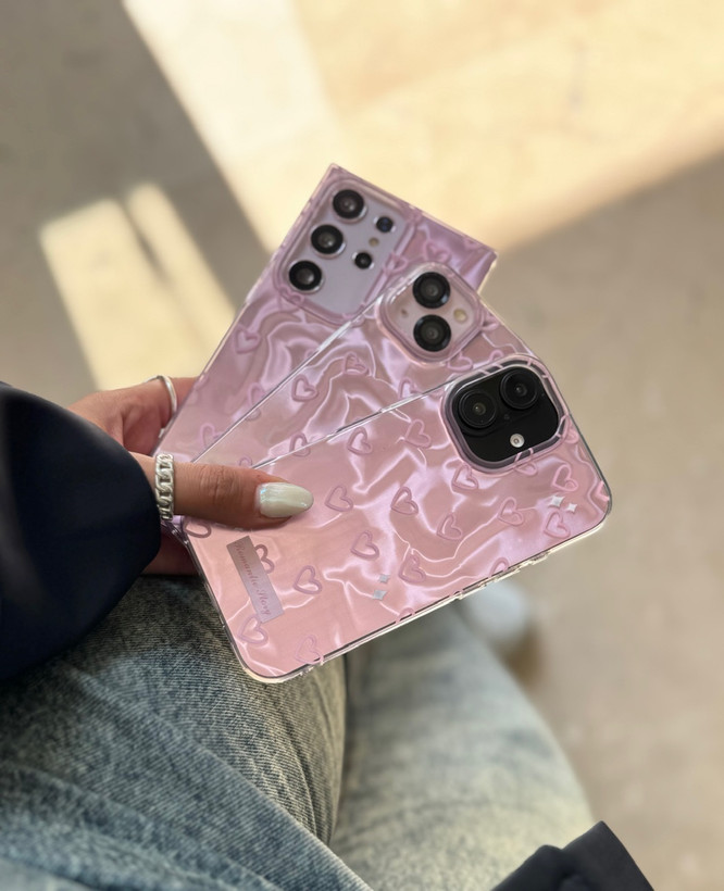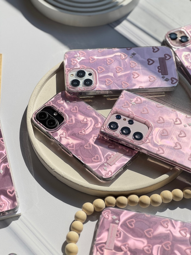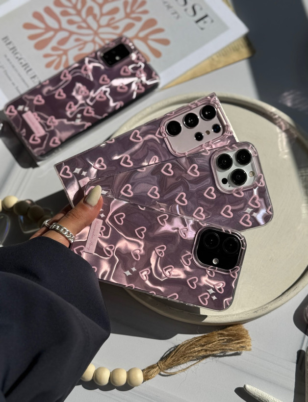 قاب گوشی آیفون سامسونگ شیائومی مدل موج صورتی قلبی