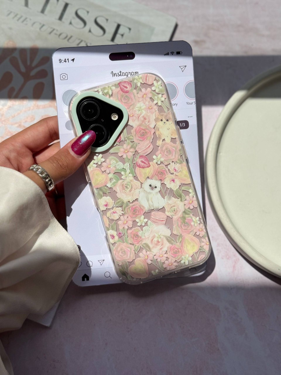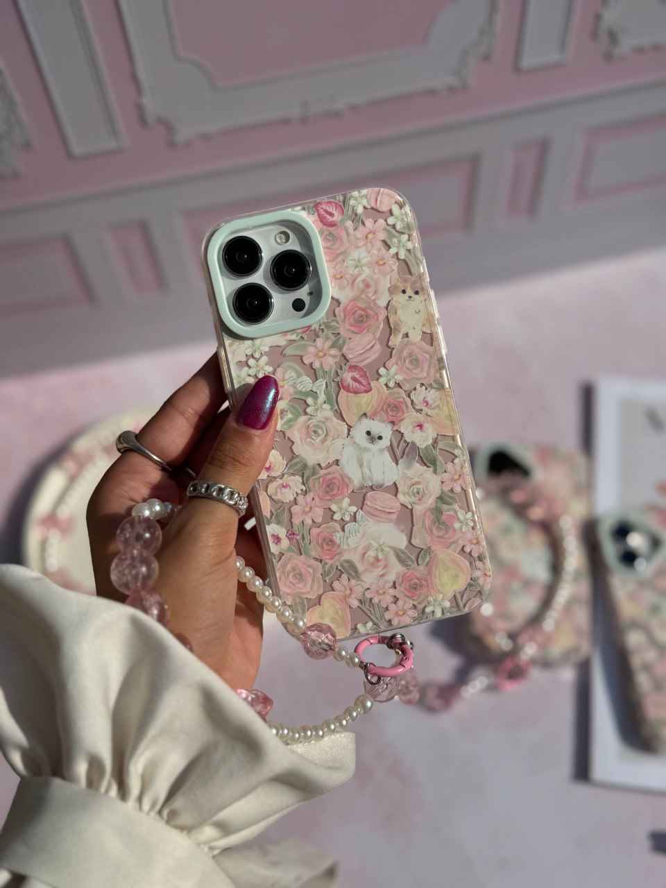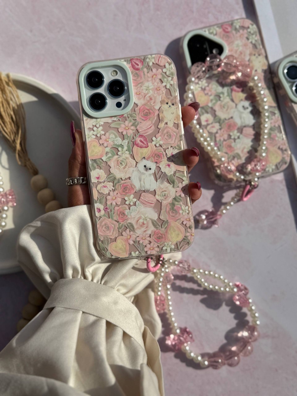 قاب گوشی آیفون مدل پیشی در باغ گل (بدون آویز )