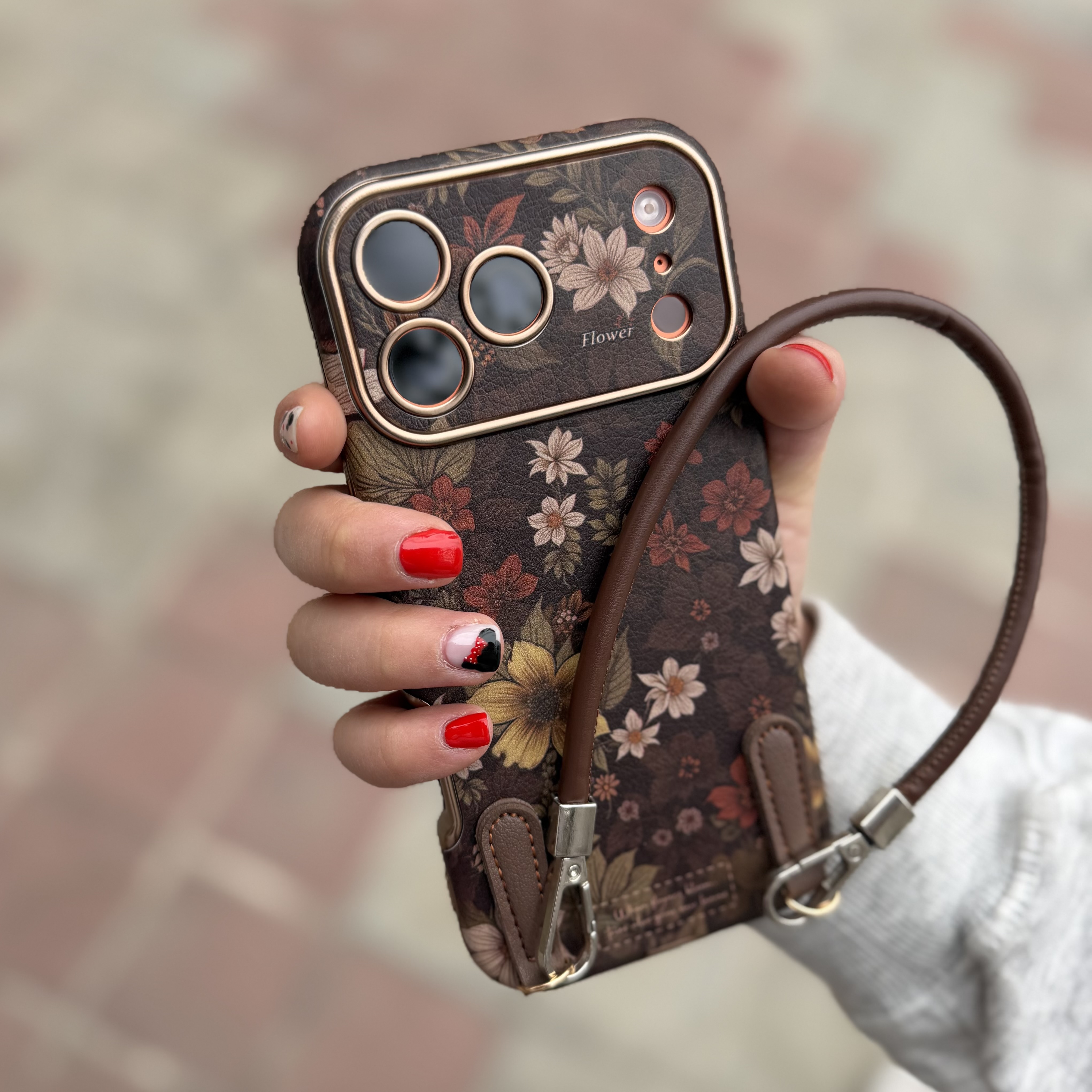 توضیحات قاب آیفون مدل Rose Brown – چرم با بند دستی