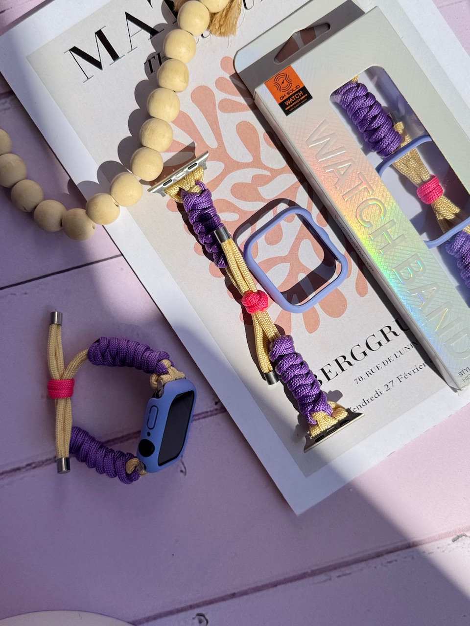 بند اپل واچ بافت بنفش کنفی با گارد سیلیکونی